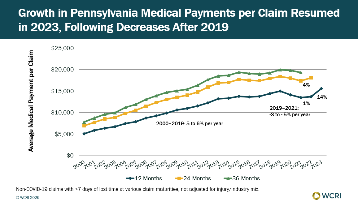 Waltham, MA, October 23, 2025 – Medical payments per claim for injured workers in Pennsylvania rose 14% in 2023, following relatively stable or…